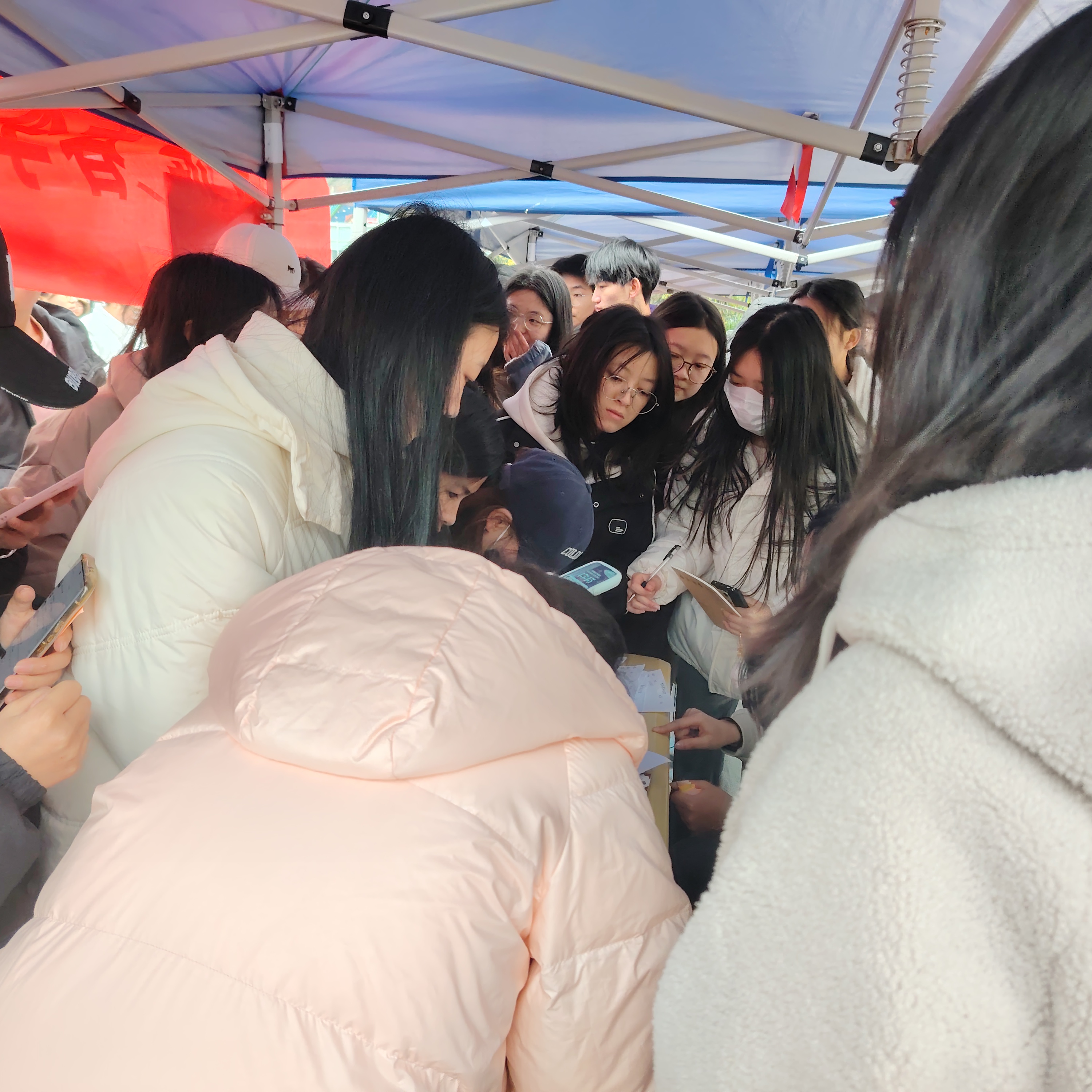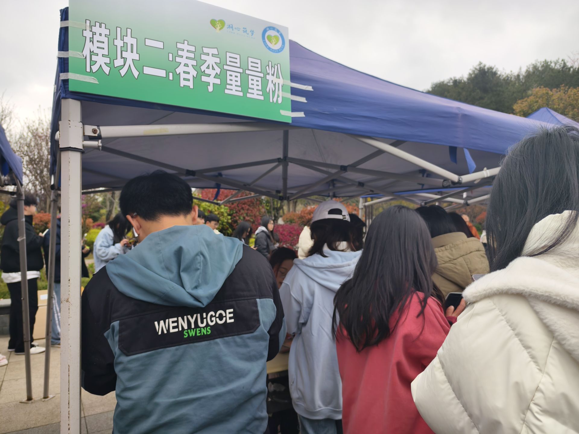 “春季量量粉”模块同样亮点突出。现场专门设置职业测评区,学生们通过扫描二维码,认真填写专业测评工具。在这一过程中,他们得以对自己的职业倾向、兴趣、性格和能力进行全面且深入的剖析,如同为自己的职业发展绘制了一幅精准的“导航图”,为未来的职业规划提供了有力参考。