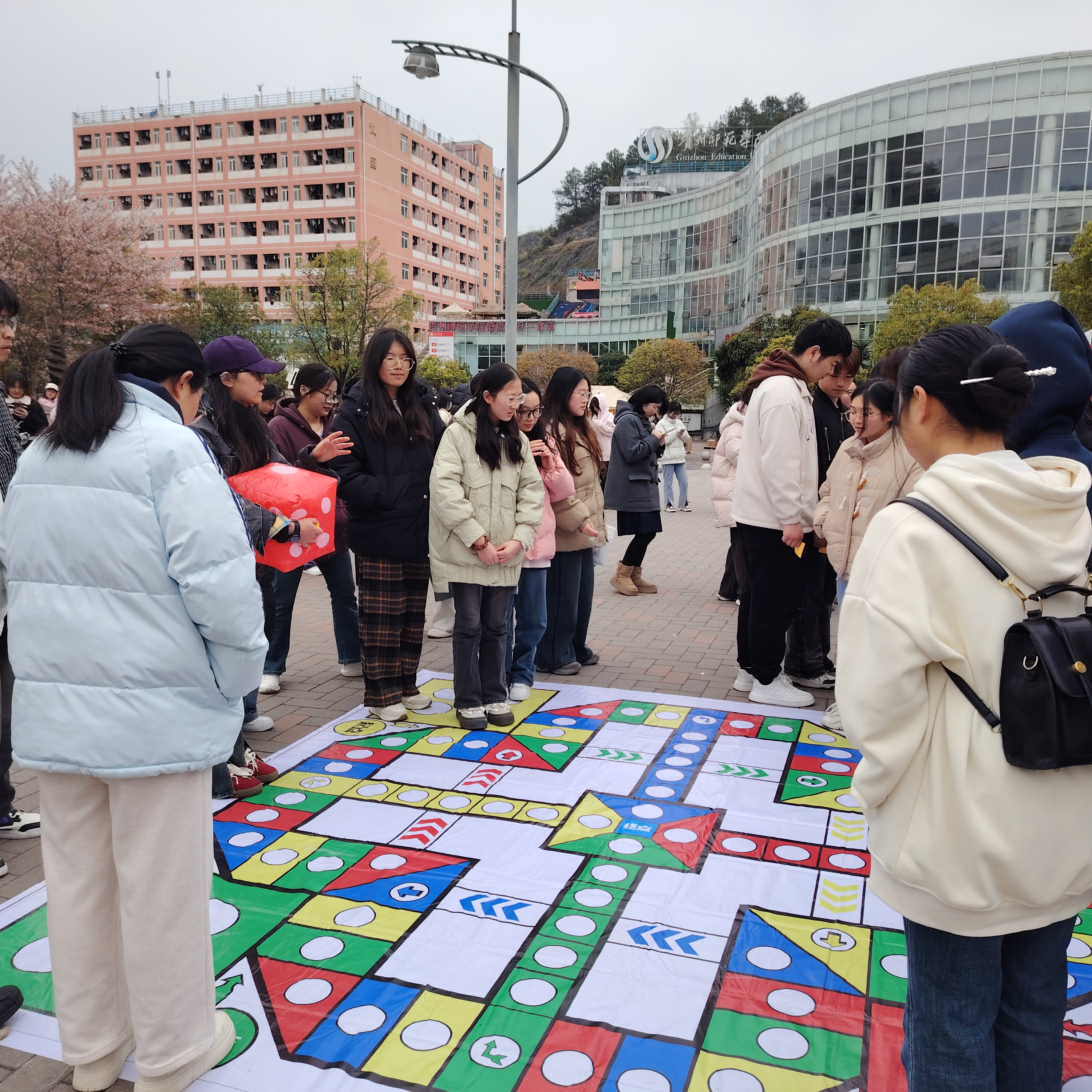 “春季飞行棋”则以游戏闯关的创新模式,成功激发了学生们学习职业知识的热情。定制的大型飞行棋地图上,知识问答格、企业需求格、陷阱格和奖励格交错设置。4人一组,大家轮流掷骰子前进,在充满挑战与惊喜的行进过程中,参与者们认真思考、积极回答各类知识问题,努力完成企业需求任务。