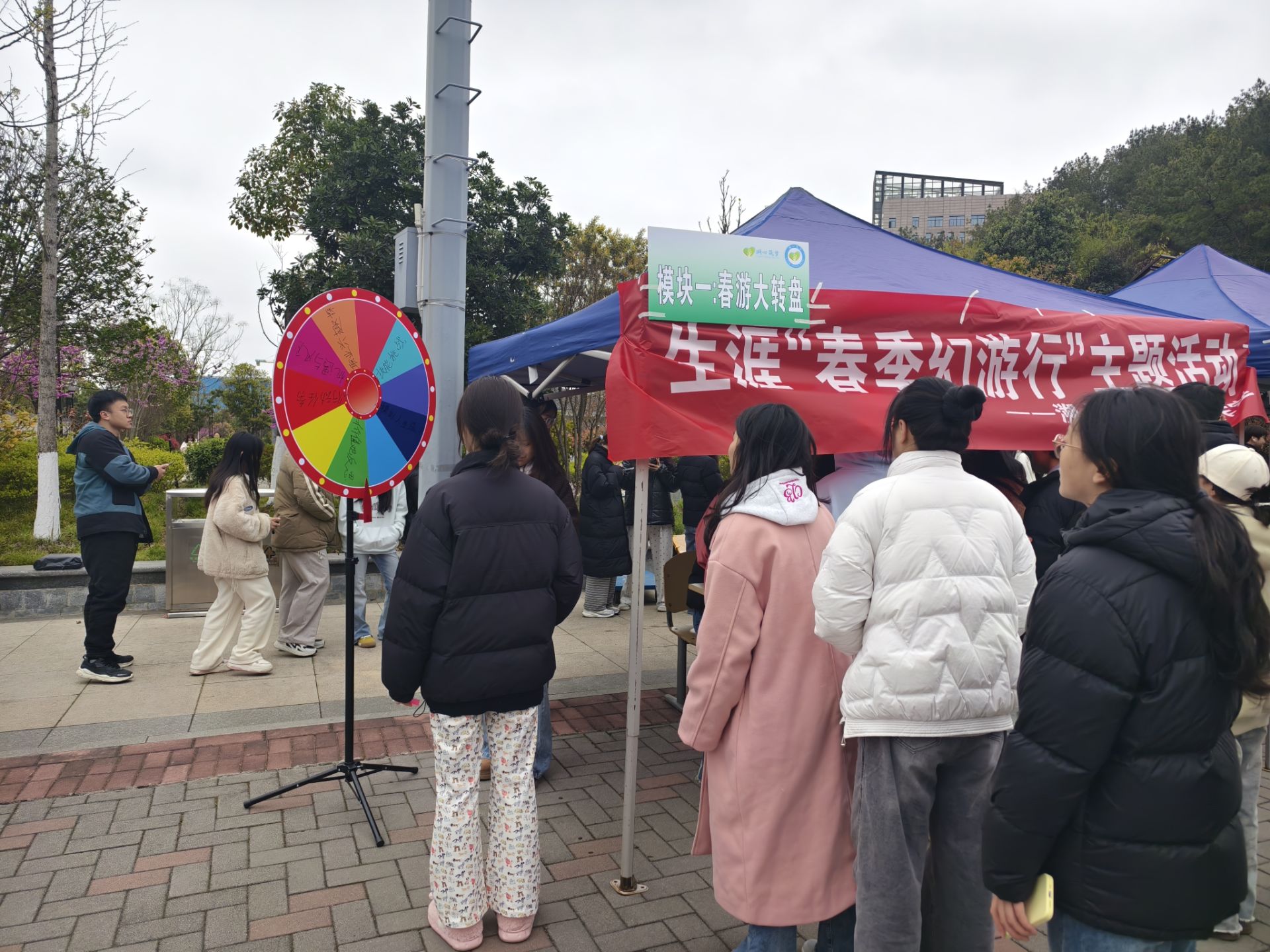 活动环节的设计更是独具匠心,充满趣味。“春游大转盘”环节成为了学生们热衷参与的项目。参与者只需轻松扫码关注公众号,就能获得转动大转盘的机会。大转盘被巧妙地划分为多个扇形区域,涵盖了职业兴趣探索、技能挑战、模拟人生选择、价值观反思、行动任务、机遇与风险等多个生涯探索维度。在转动转盘的过程中,同学们仿佛开启了一场奇妙的职业探索之旅。
