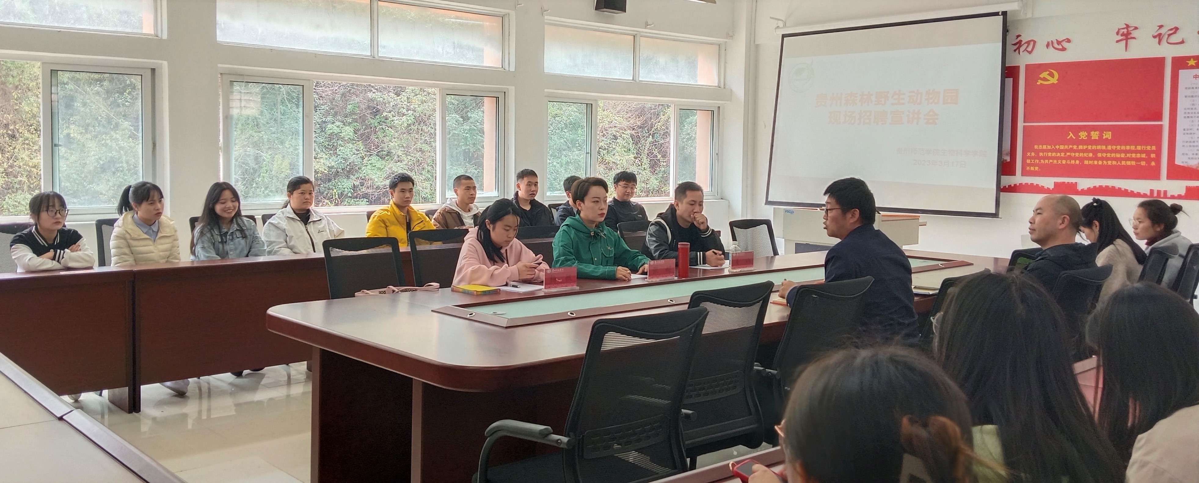 6165金沙总站2019级应用生物科学专业毕业生,在致远楼608会议室参加了贵州森林野生动物园现场招聘宣讲会。学院领导对此次招聘会高度关心和支持,生科院副院长孟泽彬、钱长江亲自到场组织毕业生有序应聘。